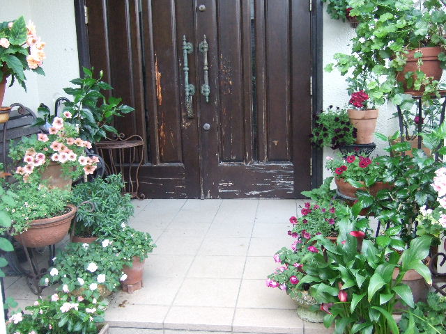 今、我が家の玄関ポーチはバーガンディーカラーとアプリコットカラーの共演で、私の大好きな二大カラーで、玄関を出入りするたびに笑顔になります。