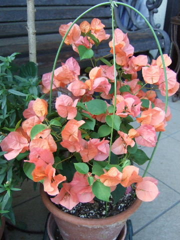 オレンジ色の強いアプリコットカラーのブーゲンビリアは、珍しい色合いで私のお気に入りです。こちらも丈夫で暑い日々に欠かせない花です。