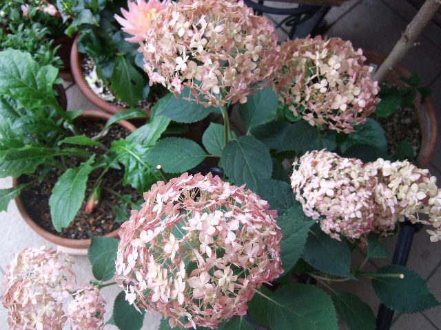 アンティークカラーのアナベルにも再度出会い、アプリコットカラーの花の中に加えました。本当に雰囲気のある紫陽花だと思います。