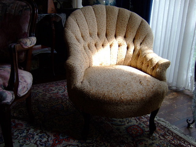 遠い海を渡ってイギリスから送られて来た時に既に100年経っていましたから、背もたれの木の部分がかなり傷んでおり、補強もして頂きましたので。