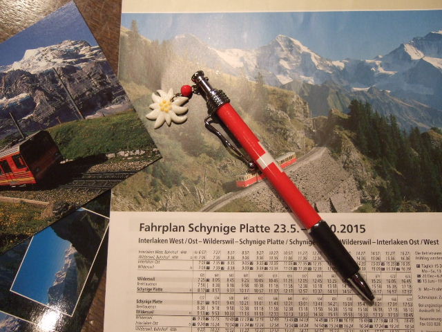 中には素敵な木彫りのエーデルワイスのオーナメントと綺麗なエーデルワイスの飾りのついた赤いペン。