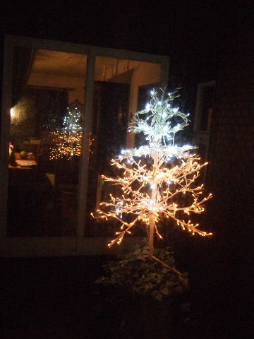 メインは中庭のイルミネーションツリーですが、ホワイト系のライト二色です。