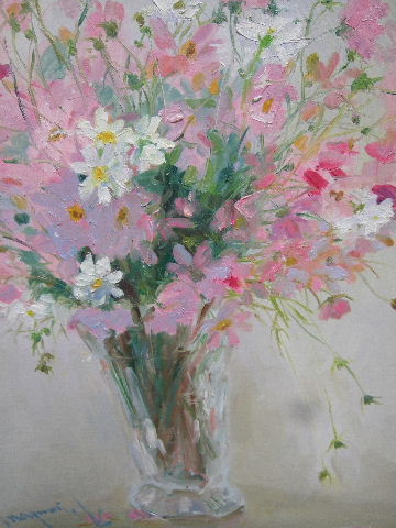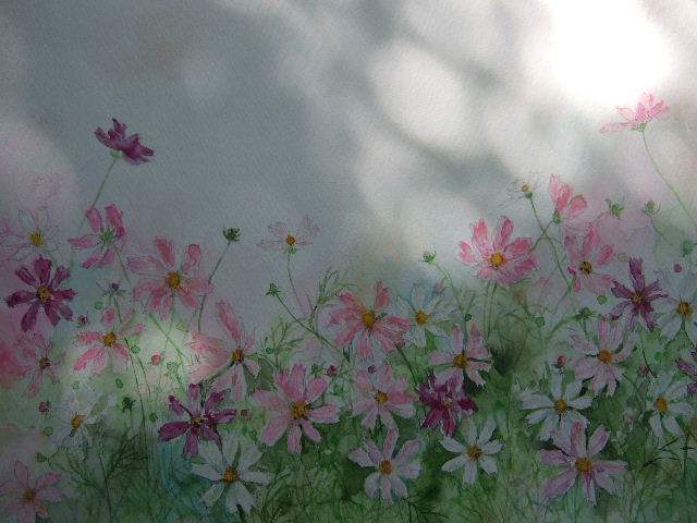 某出版社で沢山の種類の私の花の絵ハガキを製作した時にも、一番の売れ行きは断トツにコスモスだったとご連絡を頂いたことがありました。