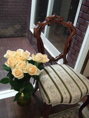 茎が長く大輪の薔薇だったので、五人の友人やお稽古ごとの先生に会うたびに一輪ずつ細いリボンをかけてプレゼントしたら、大変喜んで下さいました。