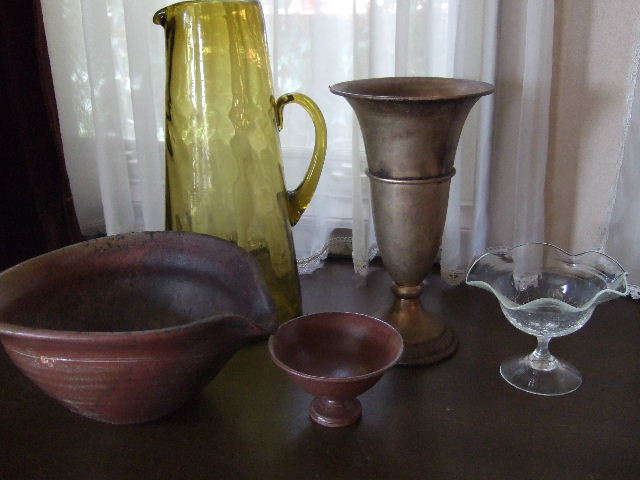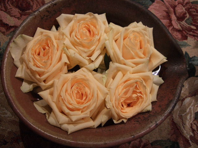 そしてそれからは、花の部分のみにして、渋い陶器のお気に入りの片口の器の中に浮かべて楽しみました。