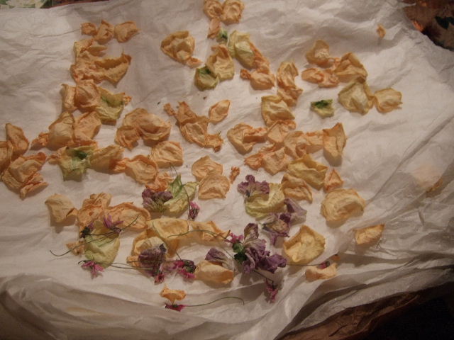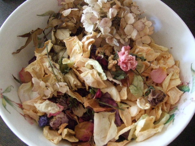 少し傷んだ花はポプリにするために乾かし、予想通り綺麗な色合いに仕上がりました。