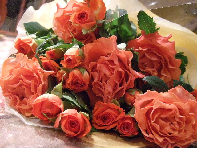今夜から樹里亜も我が家で数日滞在ですから、彼女だけでなく、皆でこの秋色オレンジの素敵な薔薇のブーケを眺められて本当に幸せです。