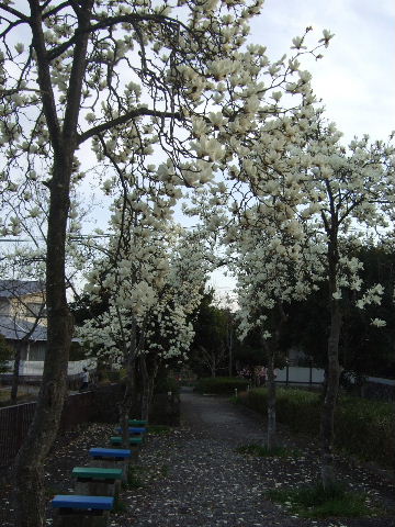 ことに散り際の夕暮れを歩くと、小道は白い花びらで覆われて、とても幽玄な風情です。